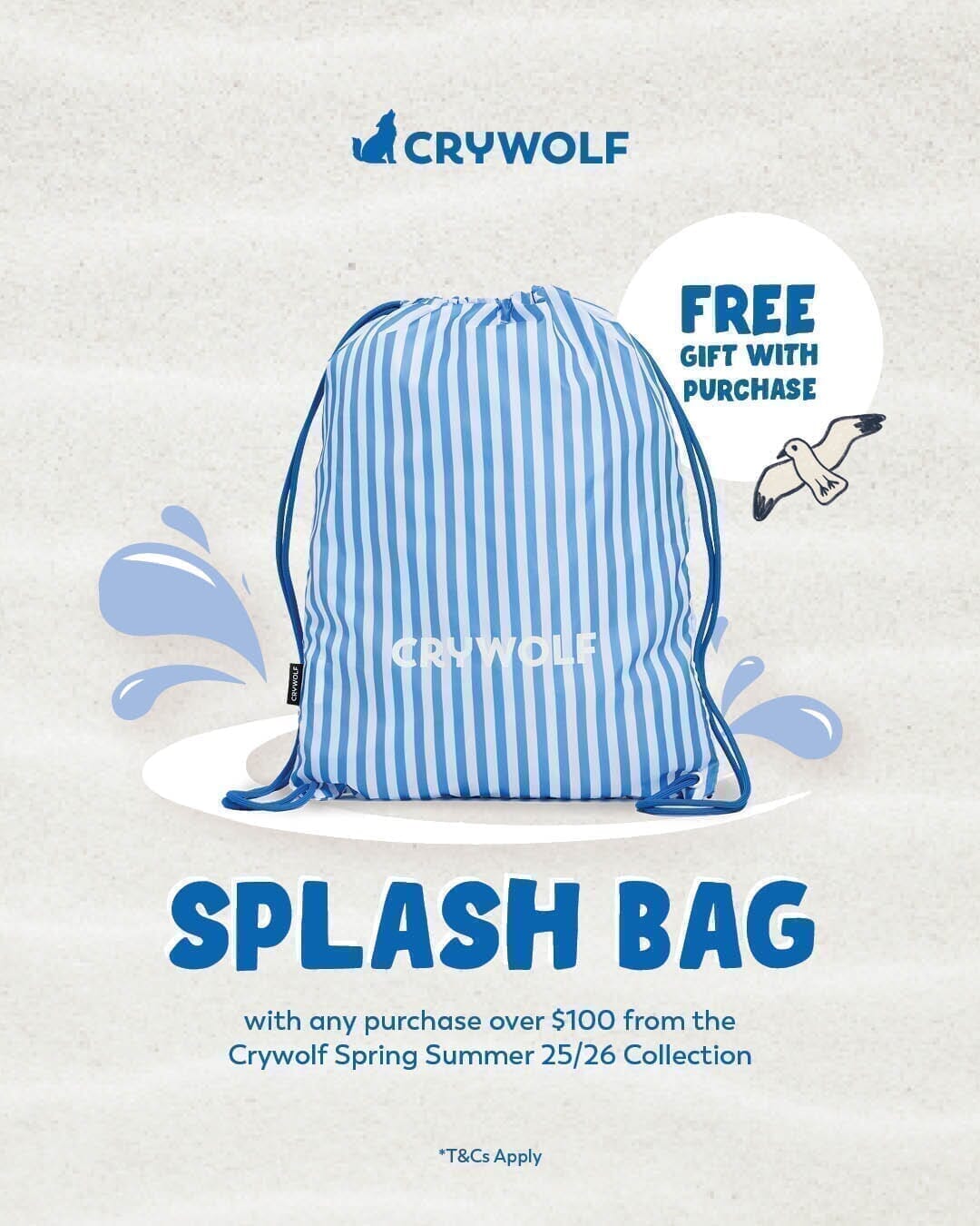 FREE SPLASH BAG - When you spend $100 or more on the Crywolf Lucky Days Collection. While Stocks Last.